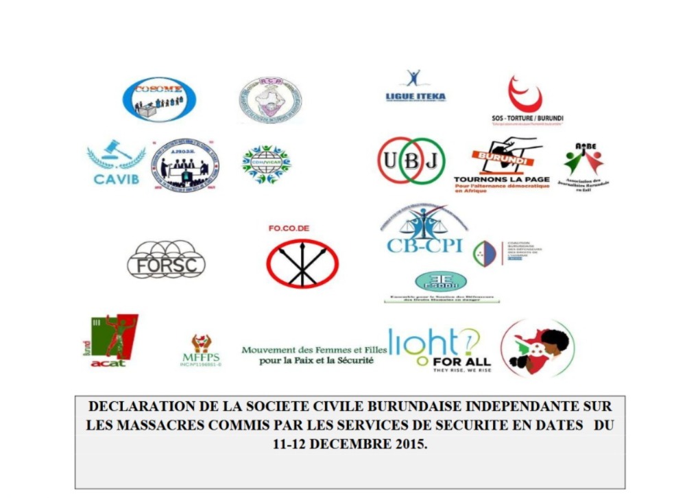 Déclaration de la société civile burundaise indépendante sur les massacres commis par les services de sécurité en dates du 11-12 décembre 2015
